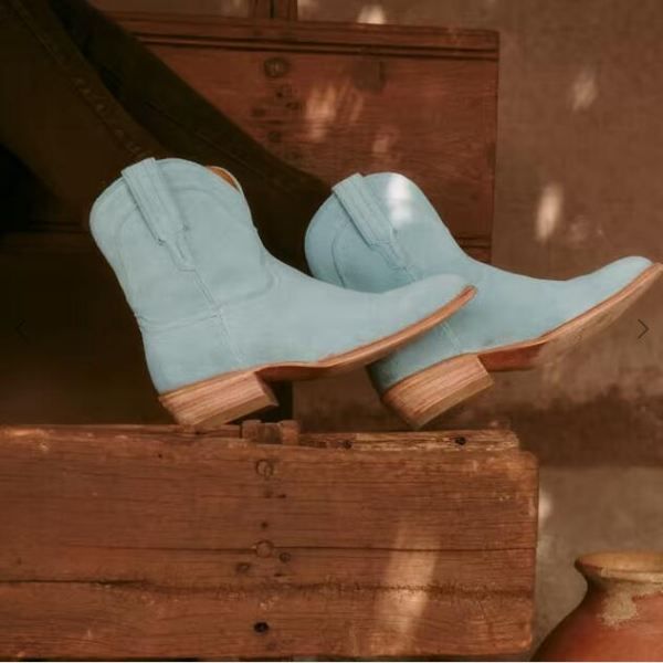 The Lucy might be the most versatile, handmade western bootie ever made. Supple & glove-like water-resistant suede leather wrap an elegant ankle boot profile featuring subtle hand-cording and a slightly flared western shaft.