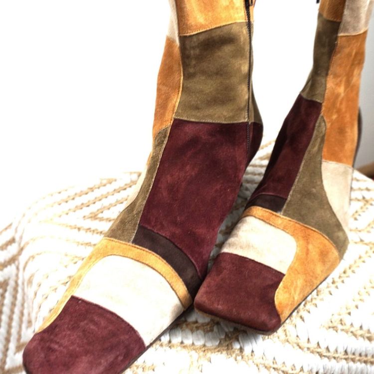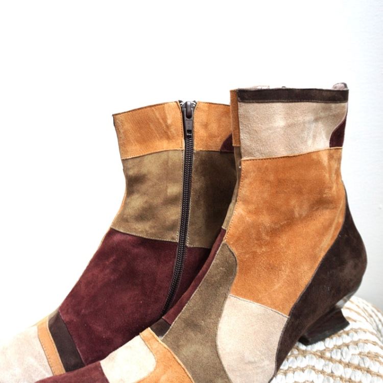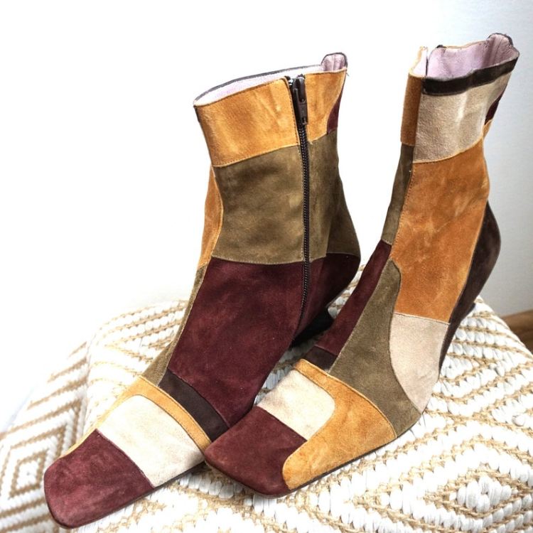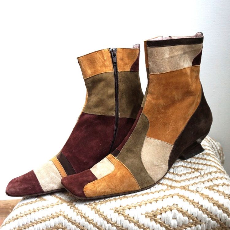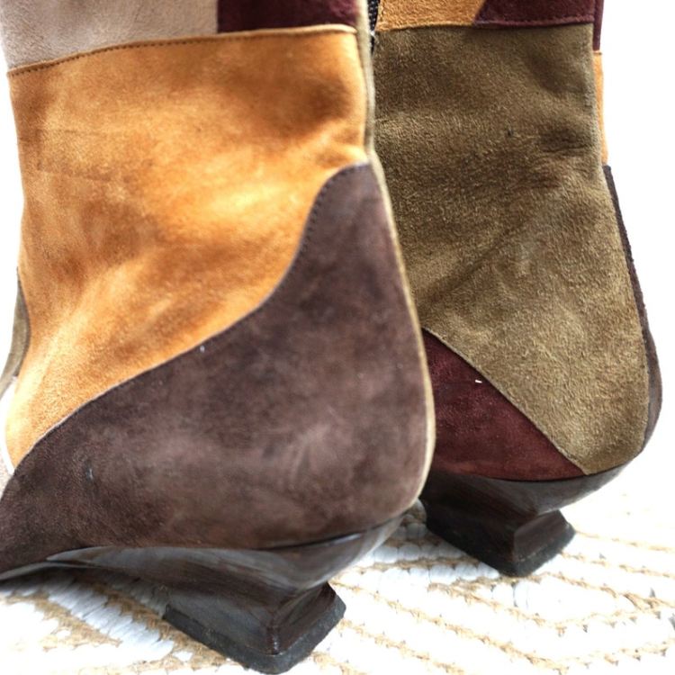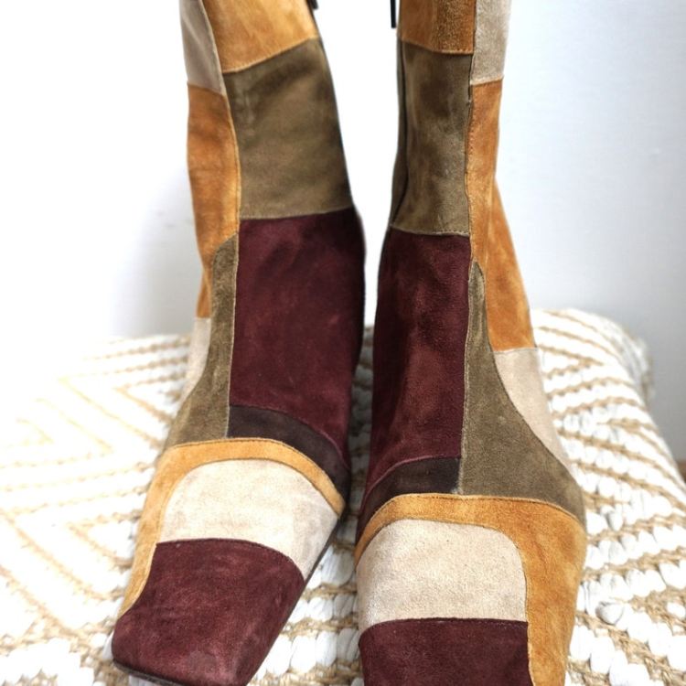 These gorgeous vintage cowgirl boots by Larry Mahan come in a womens in two tone red and brown leather with floral inlays. These boots are in good pre owned condition with tons of life left both inside and out.
